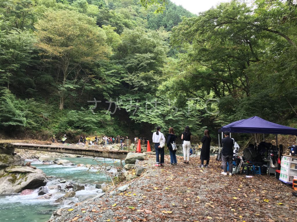 こんな山奥ですが、現場の近くまでは車が乗り入れ可能で、山のロケ地としては優秀。